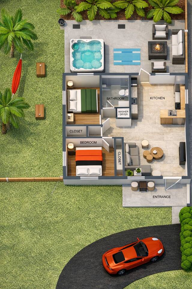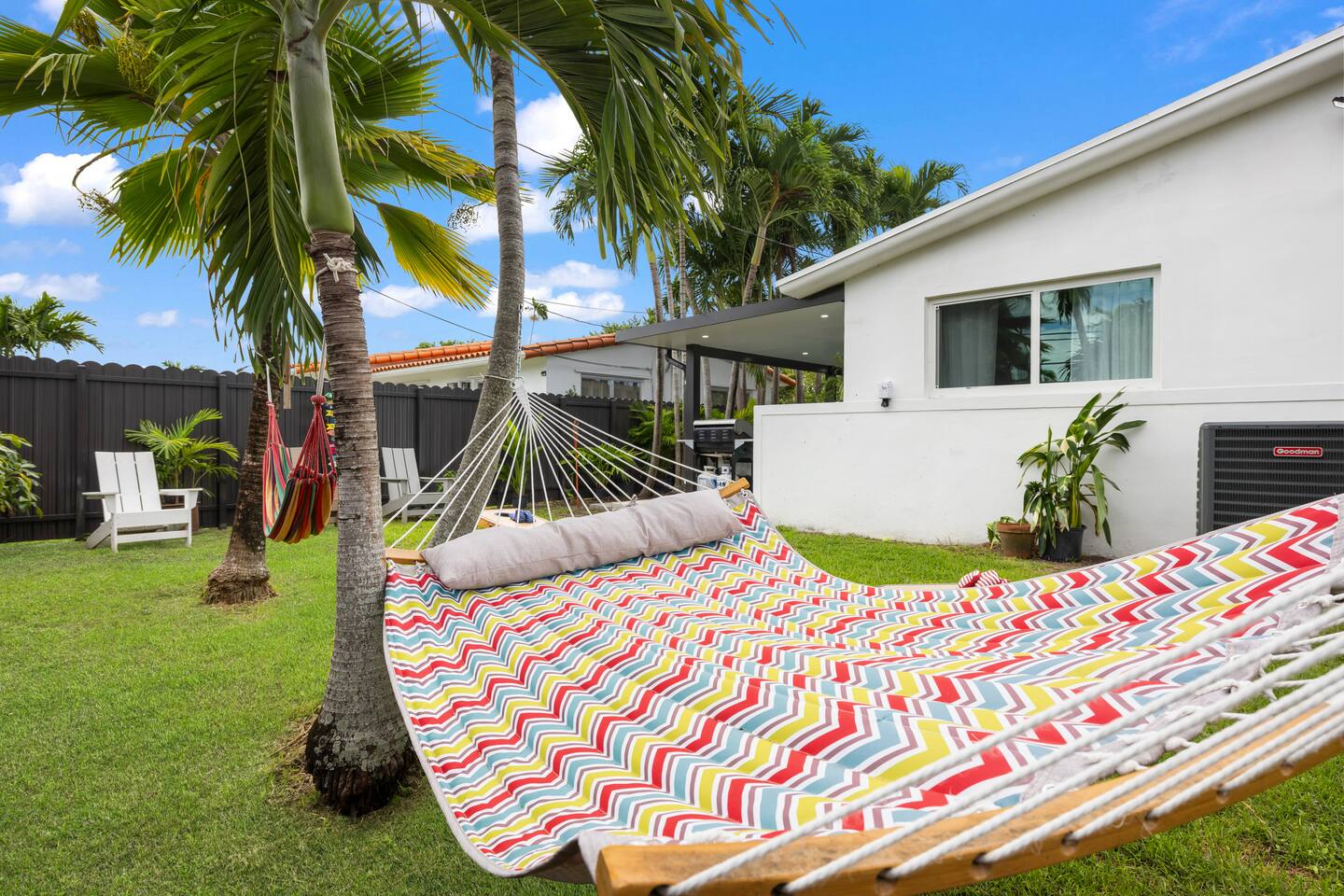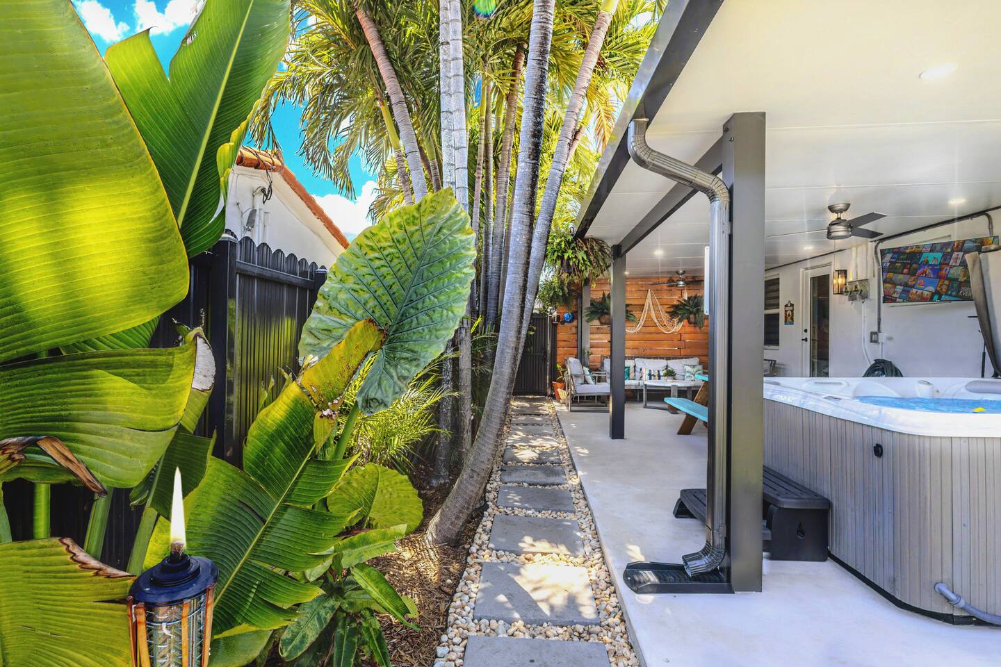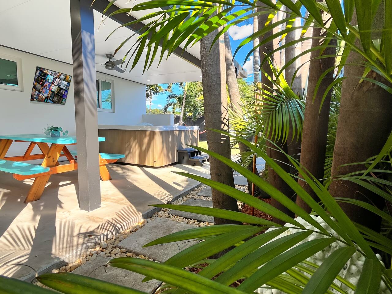 🌸 Welcome to Casita Coral Miami, one of two side-by-side bungalows, just 10 minutes from Little Havana and Miami International Airport (MIA). Each bungalow includes: • Private entrance 🚪 with self-check-in/out • Parking 🚗 • Backyard oasis 🌺 with fun activities for the entire family 🛌 Sleeping Arrangements • Bedroom 1: King-size bed 🛏️ • Bedroom 2: Queen-size bed 🛏️ • Living Room: Queen-size sofa bed 🛋️ 📍 Prime Location • Steps from the iconic Calle Ocho — full of culture, food, and nightlife 📍 • 4 minutes to Miami Airport Convention Center • 10 minutes to Miami International Airport (MIA) and Dolphin Mall • 20 minutes to the beach • Short drive to Vizcaya Museum🌼, Miami Beach 🏖️, Wynwood, & Arts district. • Located in a quiet, family-friendly neighborhood with easy highway access 🚙 🌟 Awesome Amenities • 🎁 Complimentary welcome snacks & drinks • 🌐 Ultra-high-speed Wi-Fi (700 Mbps) for remote workers • 💆♀️ Outdoor hot tub with hydro massage & temp control (for 7 people) • ☕ Specialty Coffee station: K-cups, creamers, ground coffee, decaf, and tea • 🚘 Free parking for up to 4 cars • 🍽️ Fully stocked kitchen with: • Cookware, toaster, blender, kettle, BBQ utensils • Dishwasher (with complimentary detergent pods) and paper towels • 🍼 Family-friendly features: • High chair, pack-and-play crib, stroller/car seat • Kids’ books, games, utensils, plates, cups, and bibs • 🧺 In-home washer & dryer with provided detergent pods • 📻 Record player, board, and card games • 🌴 Tropical backyard with: • Roofed patio, hot tub, ceiling fans, Adirondack chairs, picnic table • Outdoor TV, BBQ grill (propane provided by guests, swap at nearby Walmart), hammocks • Outdoor games 🏈 • 🏖️ Beach gear: towels, chairs, cooler, & umbrella • 📺 Streaming on all 4 TVs: Netflix, HBO Max, YouTube Premium, Prime Video, Roku TV • 💤 Blackout blinds in all bedrooms • 🛋️ Memory foam sofa bed in living room with pillows & linens • 🧳 Closets with hangers, ironing board, full-length mirrors, luggage stands • 🛁 Deluxe bathroom with: • Soap, shampoo, conditioner, hair dryer, makeup towels, toilet paper • Complimentary toothbrushes & razor pack • ❄️ Central A/C, 🔥 hot water, 🛏️ soft sheets, 🔌 USB & USB-C charging ports • 🏥 Ideal for post-surgery recovery or medical trips 🐾 Pet-Friendly We welcome well-behaved dogs! • All pets must be listed in the reservation at booking • Unapproved pets are not allowed • Pets are encouraged to remain with owners at all times and never left unattended inside the bungalow We provide: • ✅ Outdoor pet waste stations (bags included) • 🌿 A spacious yard to run and relax • 🥣 Dog bowls for your furry friends